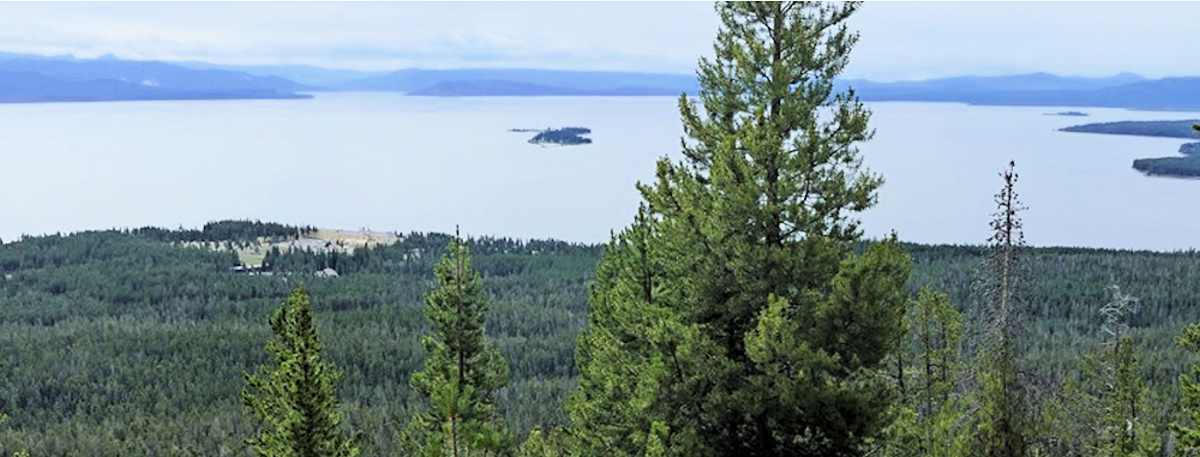 This trail climbs 800 feet in 1-1/2 miles (2.4 km) through a dense lodgepole pine forest. After a mile, the trail splits into a loop. The left fork is the shortest and least strenuous route to the top. Although the ascent does not afford much in the way os scenery, the overlook at the end of the trail does provides a sweeping panoramic view of Yellowstone Lake and the surrounding area.