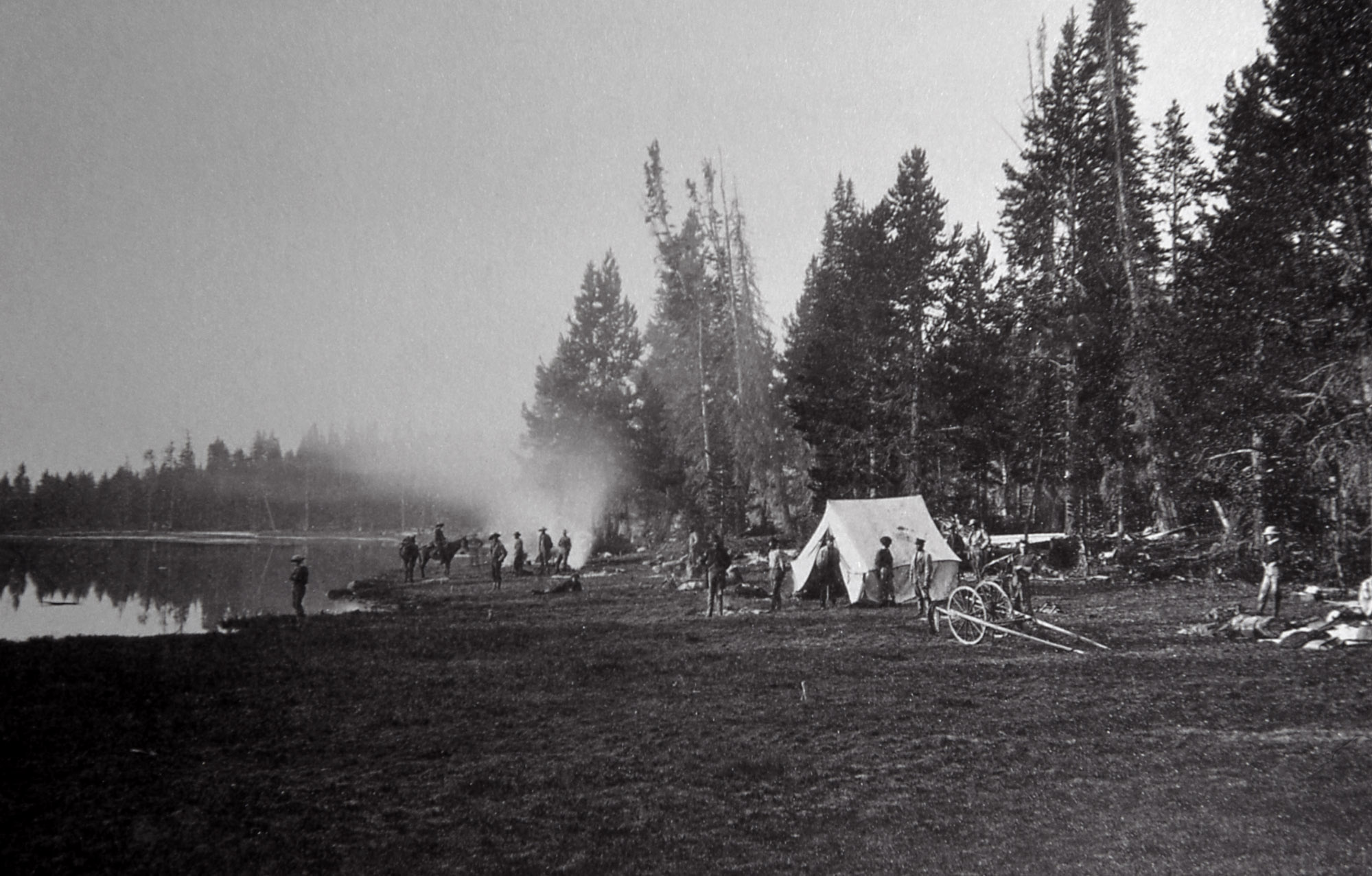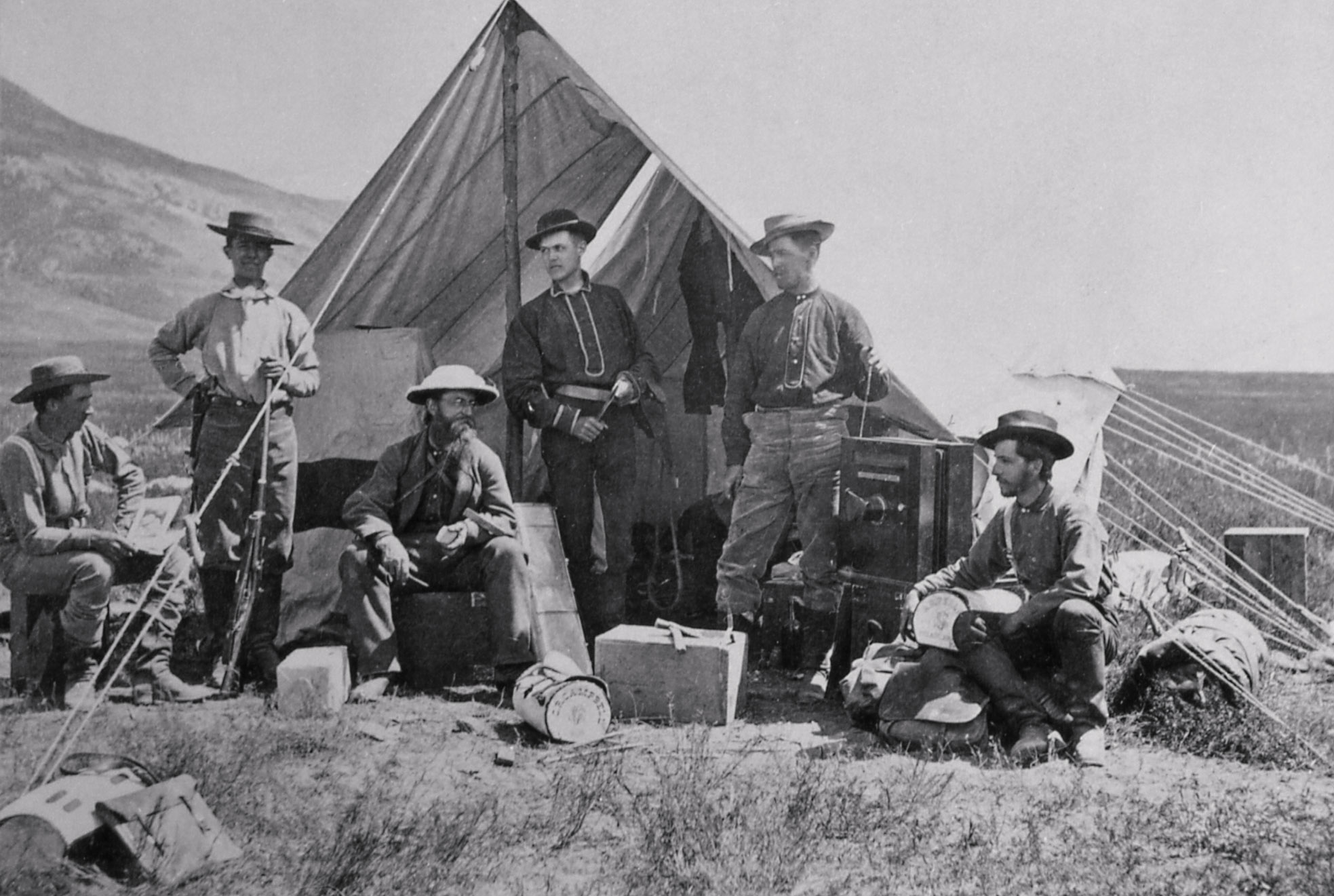 Yellowstone Expedition (1871): This was the expedition that cemented his legacy. Hauling heavy, cumbersome cameras and fragile glass plates through rugged terrain, Jackson captured the first conclusive photographs of Yellowstone’s geysers, hot springs, and canyons.